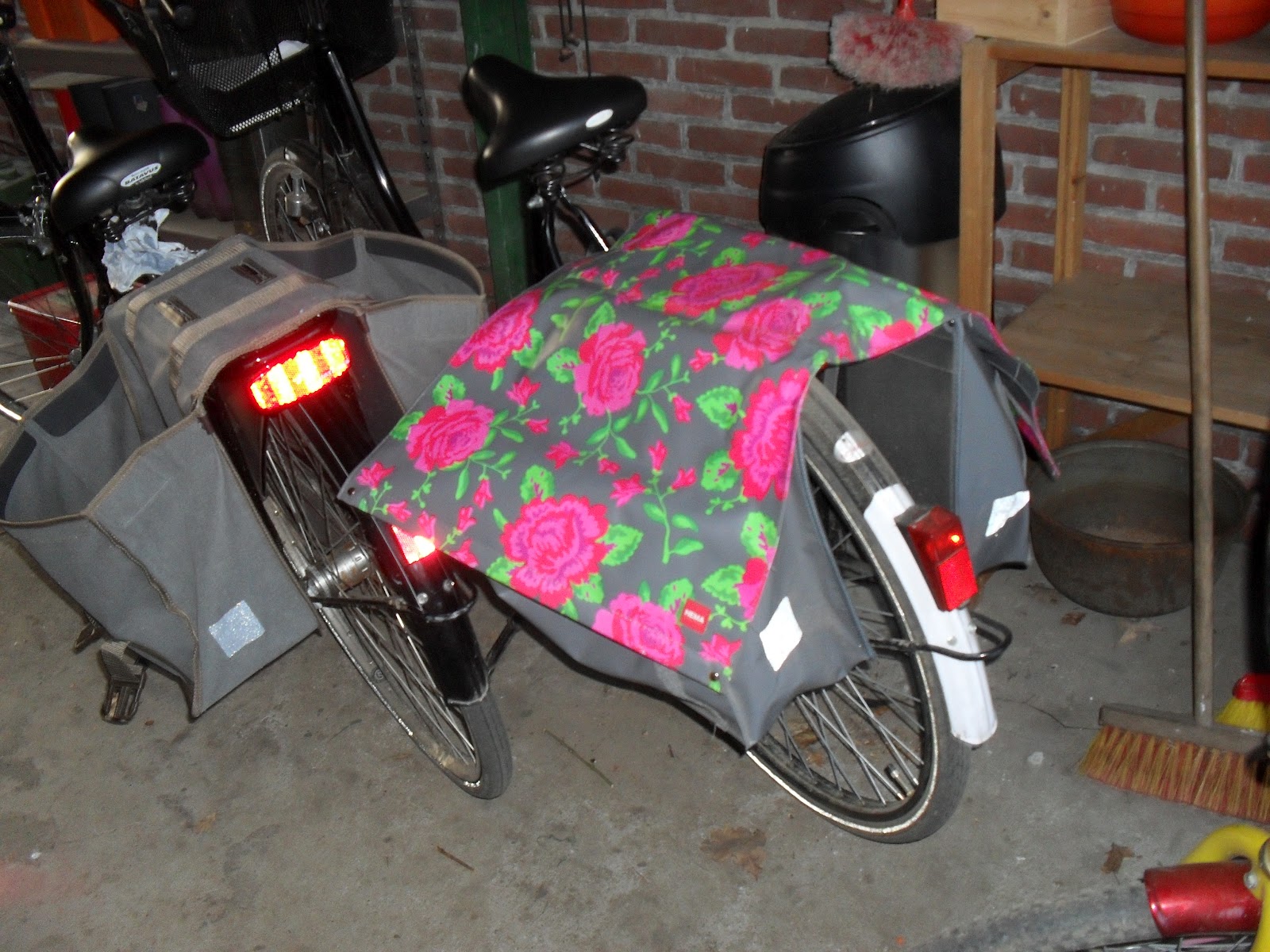 fietstassen van de kringloop, ok misschien niet zo prachtig, maar wel lekker voordelig al twee jaar in gebruik voor nog geen 5 euro, daar kan geen fleurigheid tegenop wat mij betreft,