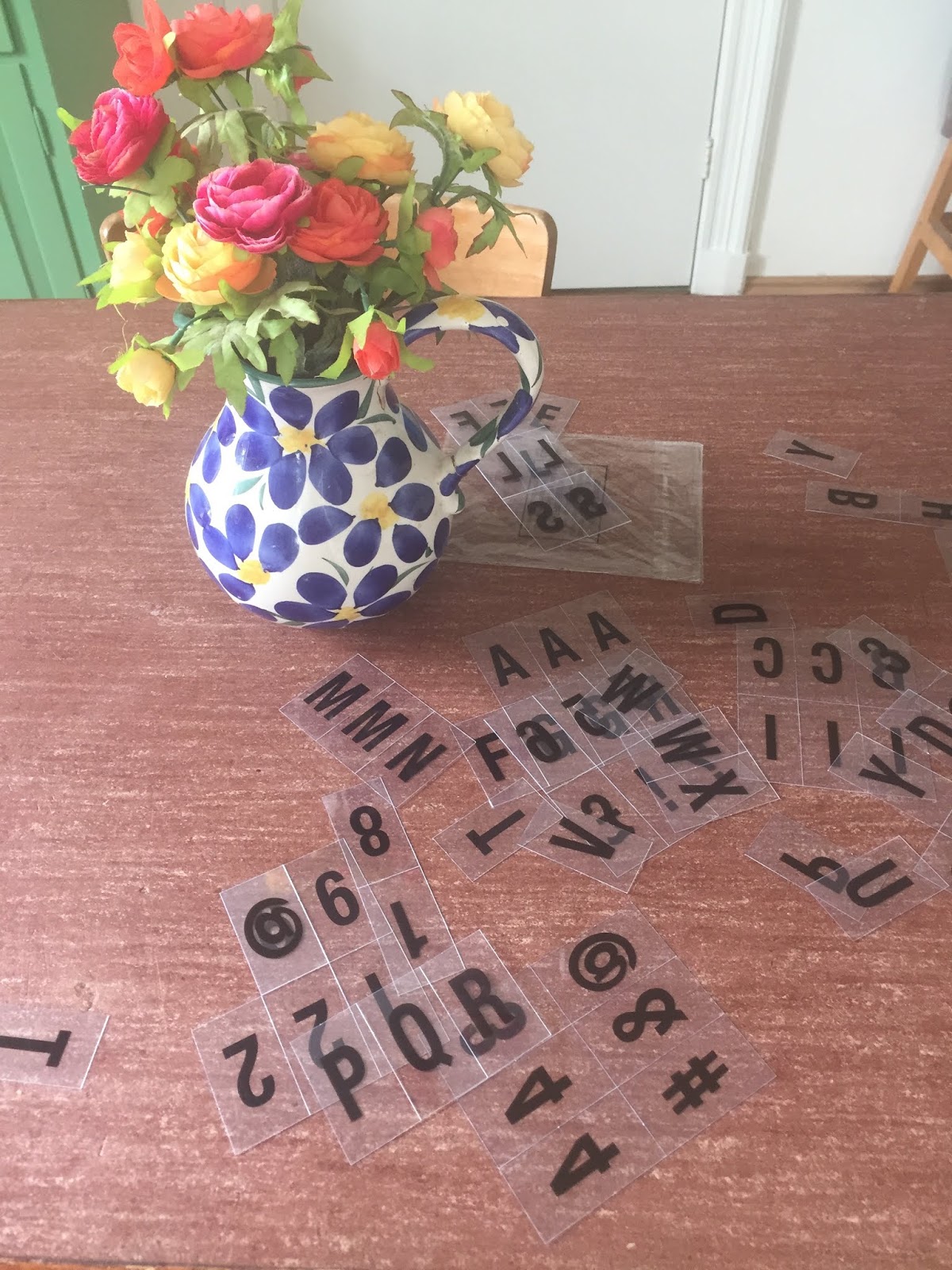 90 letters en cijfers en symbolen (zie foto voor overzicht van de letters/cijfers/symbolen)
