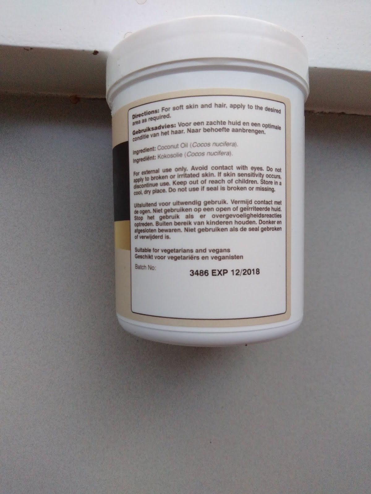 Mijn dochter werkt bij een lingeriewinkel, en kwam met enthousiaste verhalen thuis over een collega die dankzij kokosolie van Holland & Barrett prachtige haren had gekregen. Omdat ik zelf nogal vochtarm, en daardoor pluizig haar heb, vond ik dat erg interessant.