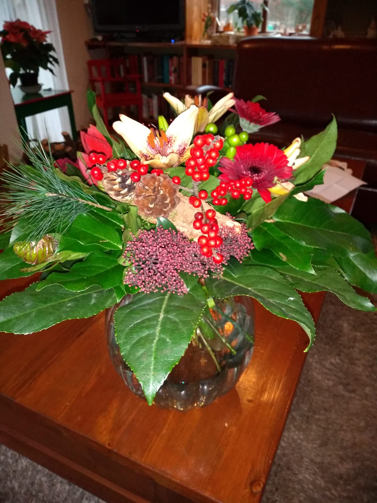 Ik koos voor een boeket bij Euroflorist vanwege de bloemen op de foto. Het afgebeelde boeket zat in een mooie glazen vaas, en ik vond het ook erg passen bij deze tijd vlak voor Kerst. Zo konden de snijbloemen zowel dienen voor de trouwdag als de Kerstperiode.