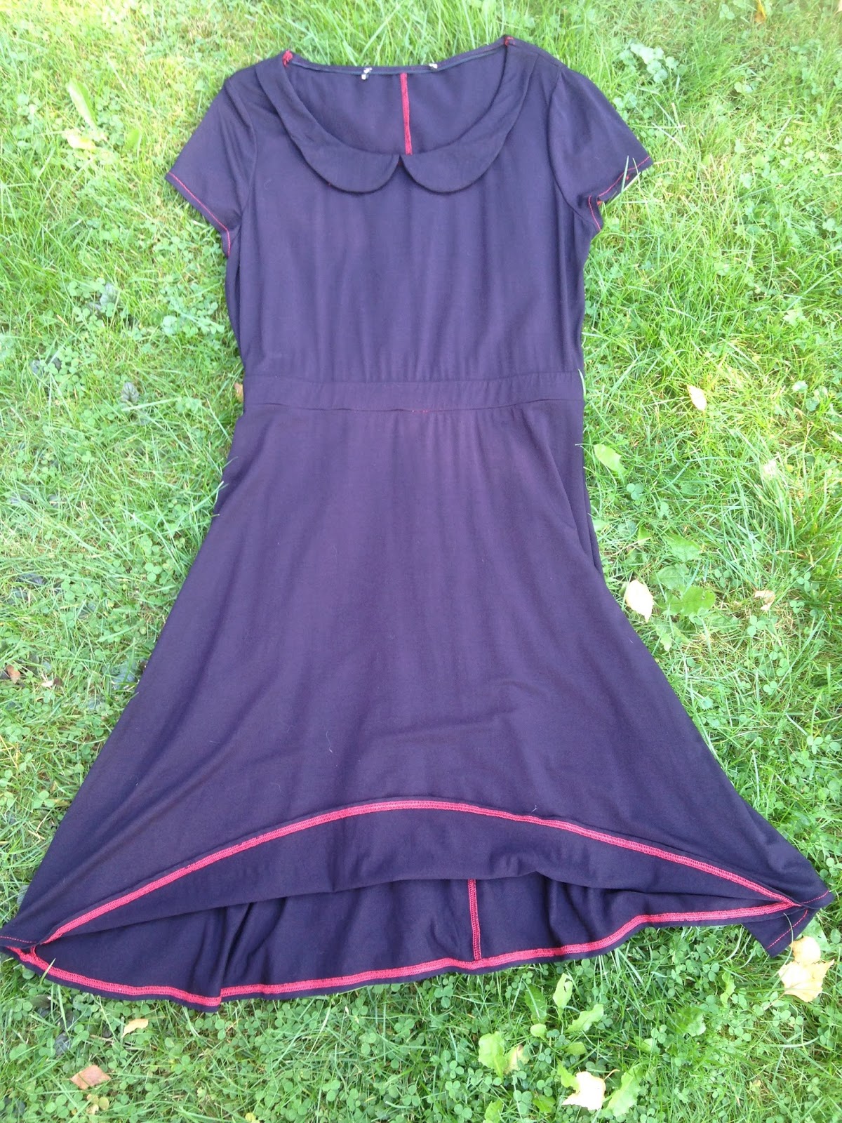 Via de Engelse eBay kocht ik een mooi rood jersey jurkje (zie foto hieronder). Helaas bleek het wel heel erg rood… Omdat het jurkje ook nog eens te groot was, besloot ik dat ik niks te verliezen had, en het donkerblauw te verven.