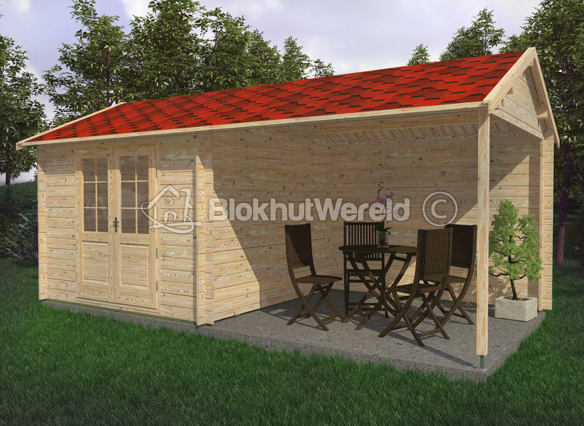 Hier onder een voorbeeld van zowel een tuinhuis als een blokhut: